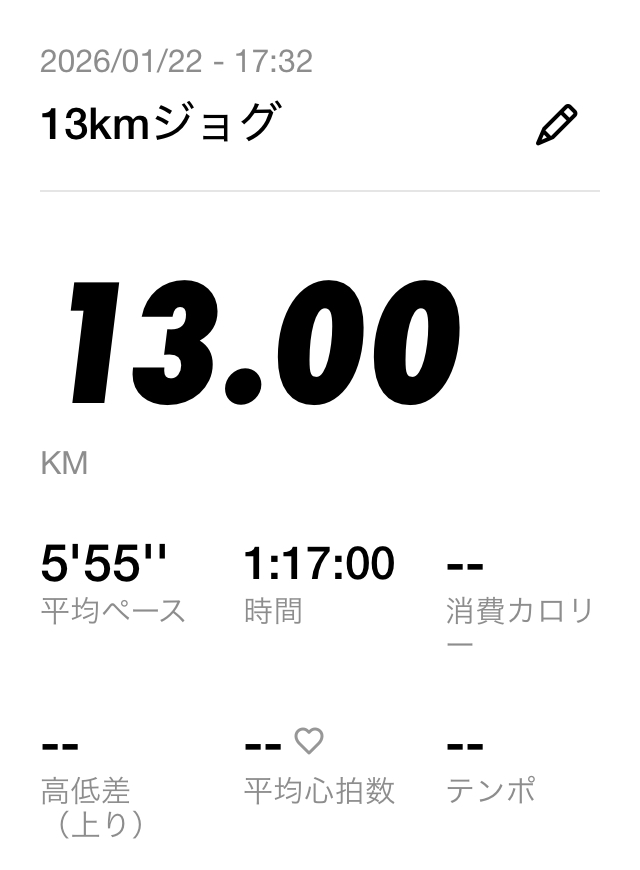 1月22日 | 13km jog