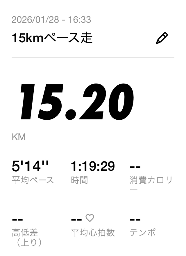 1月28日 | 15kmペース走